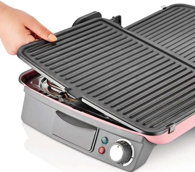 Non-stick coating, spit, contact grill, drip tray, 180° opening, carrying handle