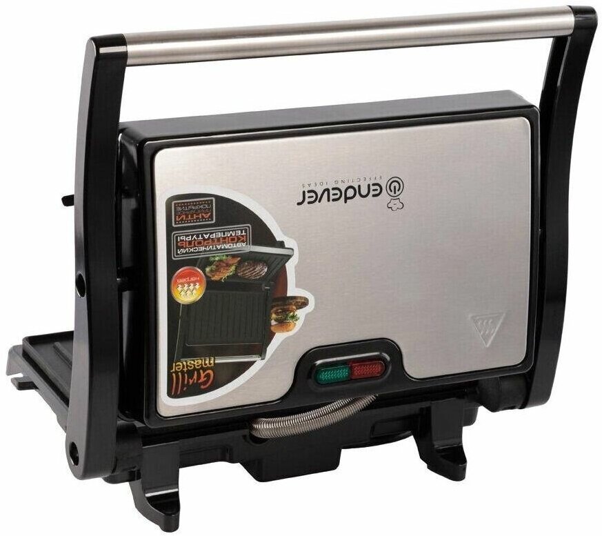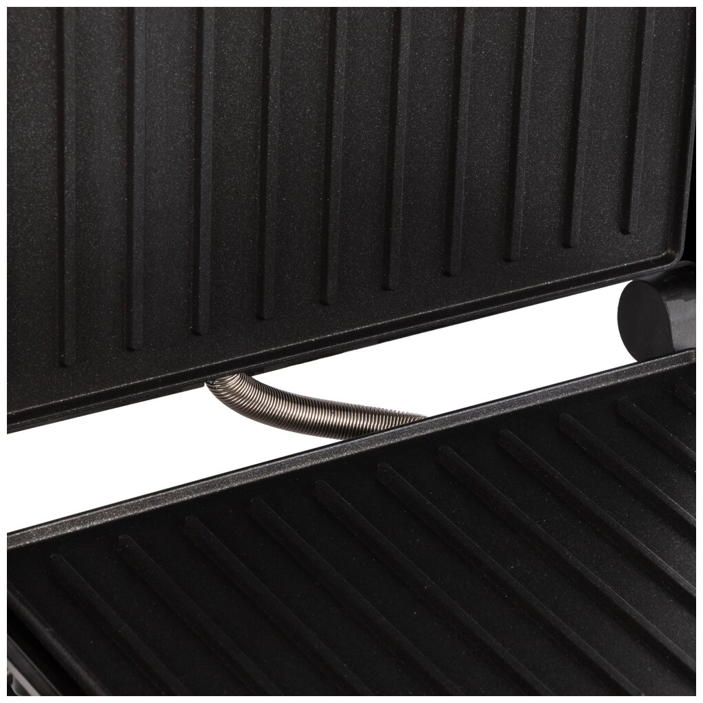 Type: grill, power: 1500 W, control: mechanical, features: non-stick coating, height adjustment of the top panel, cord storage compartment, additional functions: the ability to use the top panel