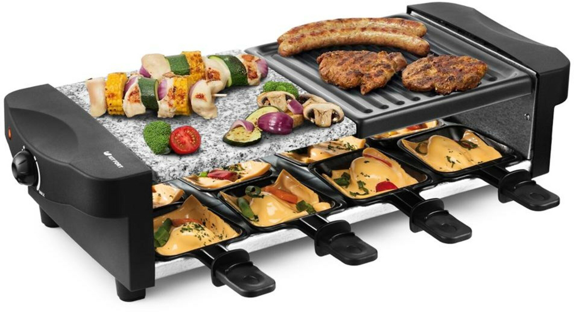 Description: Type: raclette grill, power: 1200 W, control: mechanical, features: non-stick coating, grill, removable plates, additional functions: overheating protection, temperature control, worktop material