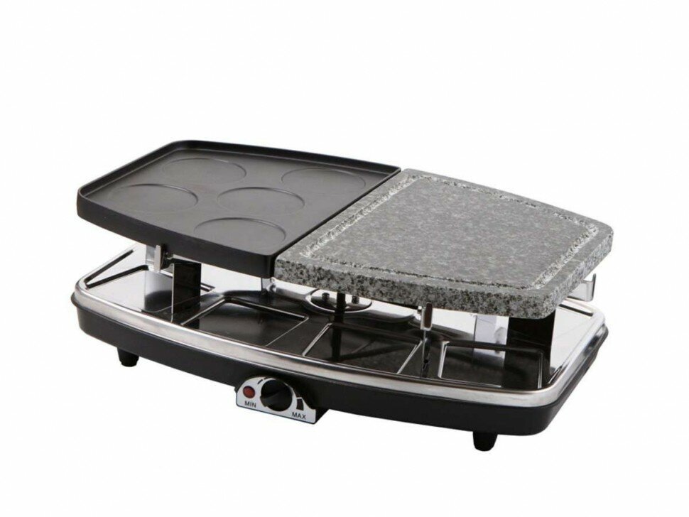 Type: raclette grill, power: 1200 W, control: mechanical, features: non-stick coating, additional functions: overheating protection, temperature control, work surface material: metal/stone,