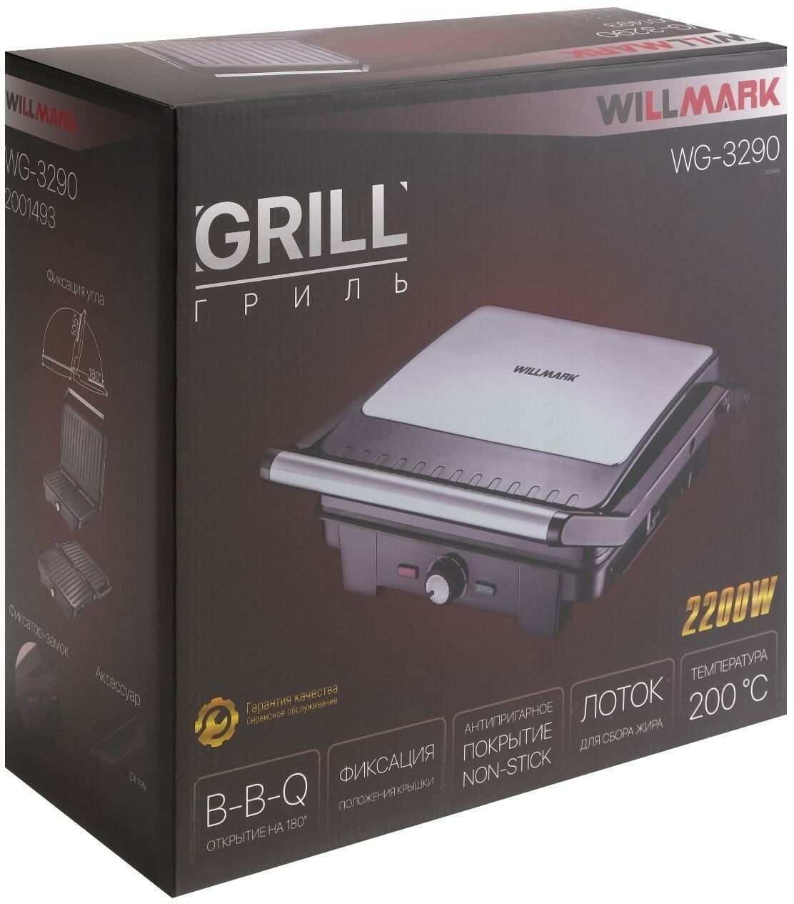 Type: grill, power: 2000 W, control: mechanical, features: non-stick coating, contact grill, fat collection tray, height adjustment of the top panel, removable plates, additional functions: possible