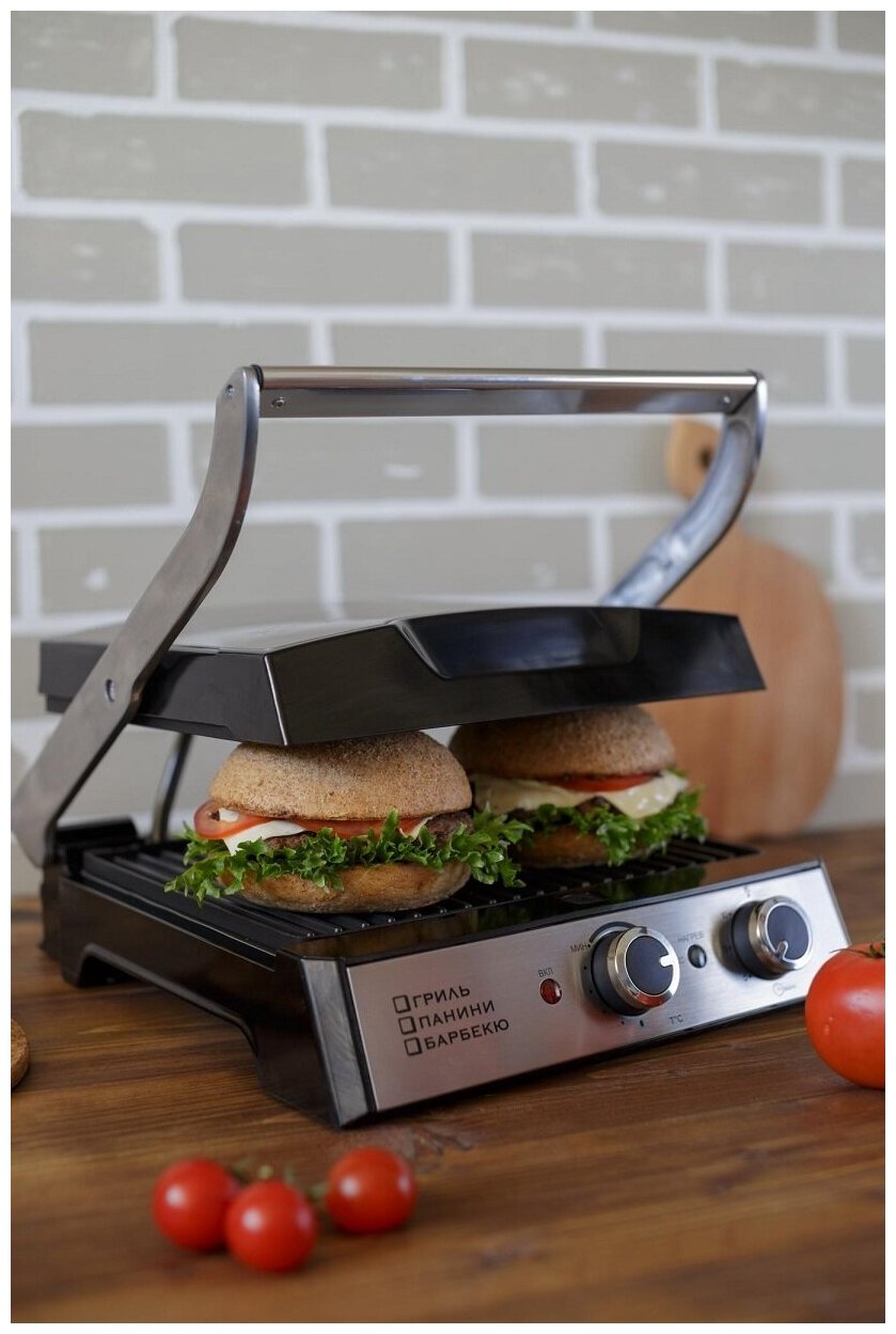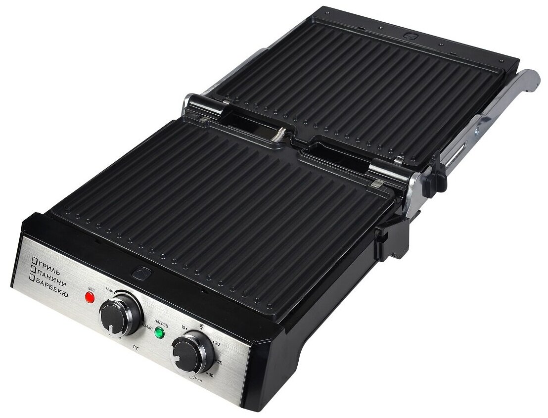 Type: grill, power: 2000 W, control: mechanical, features: non-stick coating, contact grill, fat collection tray, additional functions: temperature control, work surface material: metal