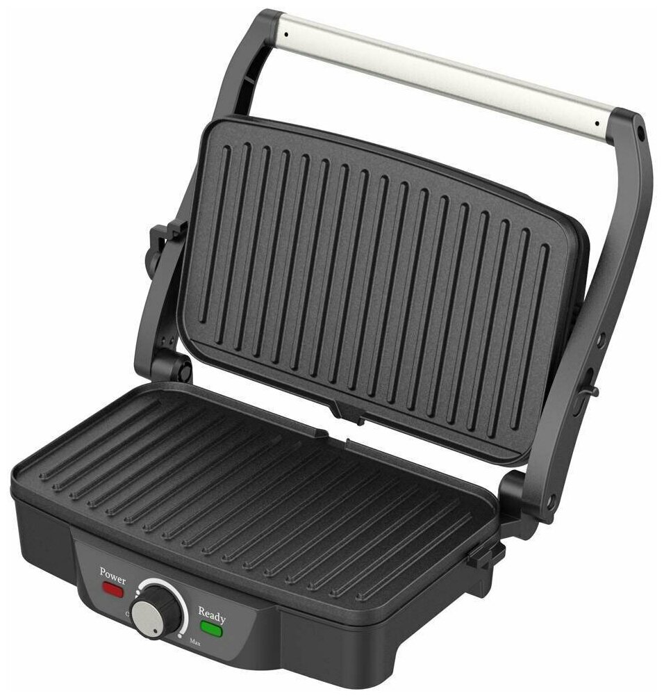 Type: grill, power: 2000 W, control: mechanical, features: non-stick coating, contact grill, fat collection tray, height adjustment of the top panel, removable plates, additional functions: possible