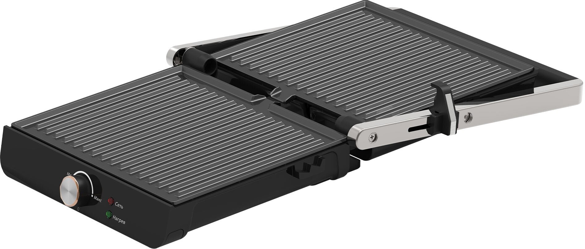 Type: grill, power: 1800 W, control: mechanical, features: non-stick coating, fat collection tray, additional functions: the ability to use the top panel as an independent