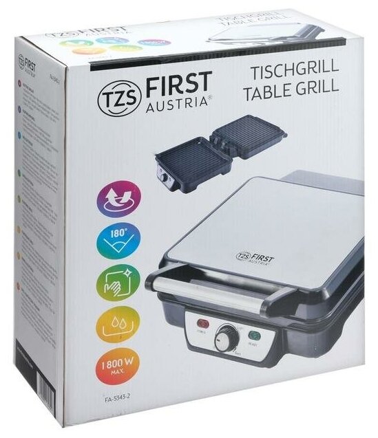 Type: grill, power: 1800 W, control: mechanical, features: non-stick coating, contact grill, lid, fat collection tray, additional functions: temperature control