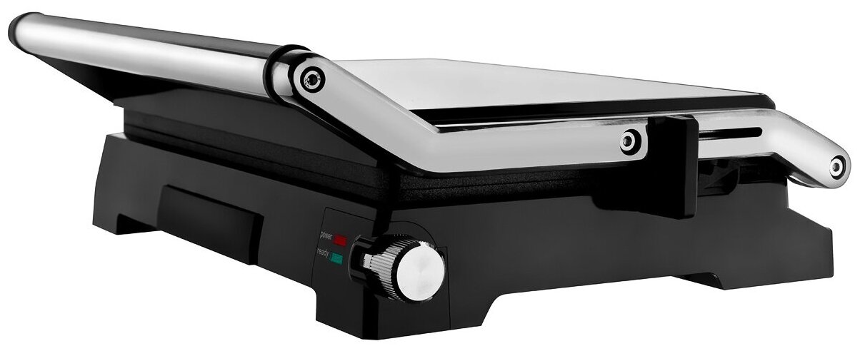Description: Type: grill, power: 2000 W, control: mechanical, features: non-stick coating, additional functions: the ability to use the top panel as an independent one, work surface material: metal, in