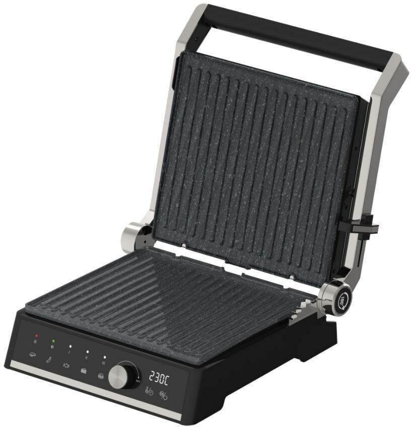 Type: grill, power: 2000 W, control: electronic, features: non-stick coating, drip tray, removable plates, additional functions: automatic switch-off, temperature control