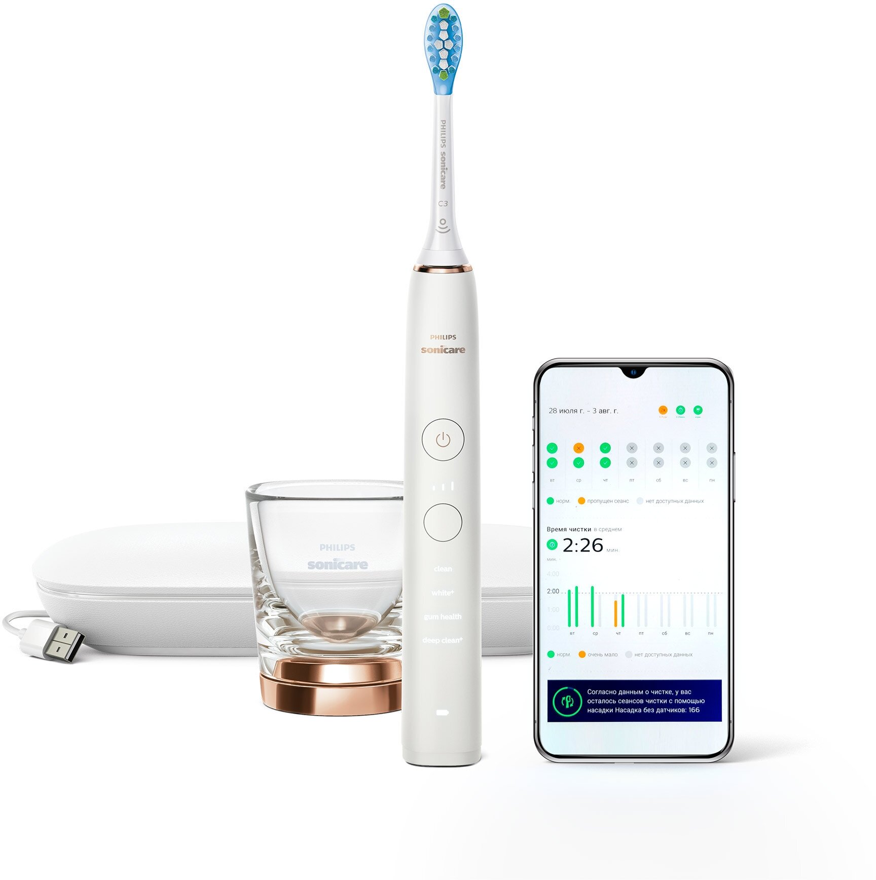 4 modes: Clean Cleaning - for high-quality daily cleaning of teeth, White + Lightening - to remove discolorations, Gum Health Gum Health - for gentle and effective cleaning of gums, Deep Clean + Deep cleaning - for the most thorough