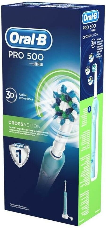 Detailed equipment: Oral-B Pro 500 CrossAction toothbrush, charger, 1x Cross Action brush head, user manual, warranty card