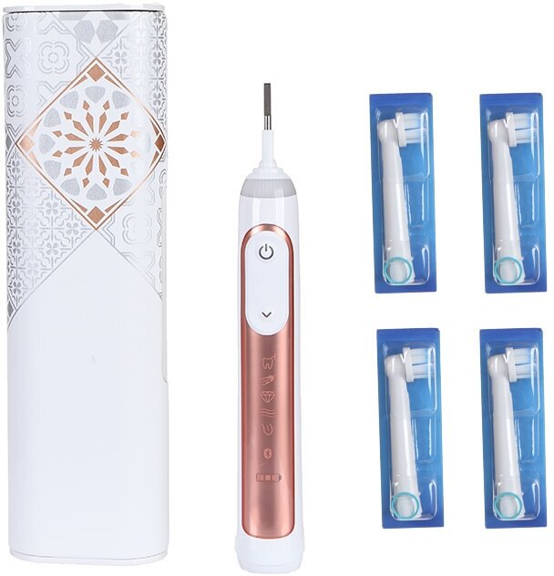 Detailed equipment: Toothbrush, charger, 4 brush heads, travel case, instruction manual, warranty card
