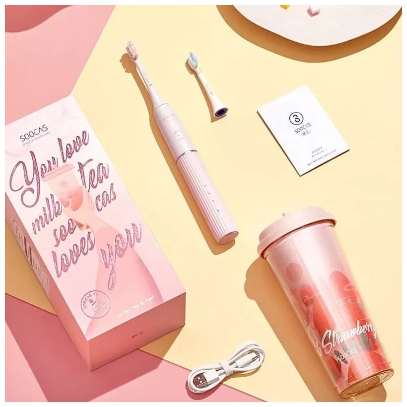 Toothbrush, 2 standard brush heads, 1 travel storage case with cup lid, 1 charging cable, 1 plastic brush holder, gift box.