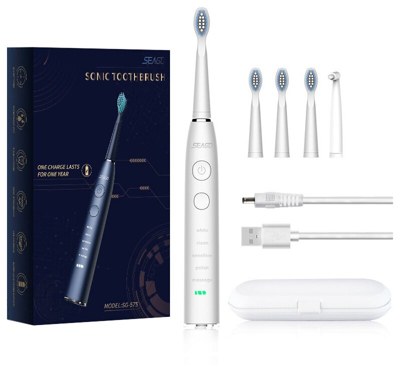 Seago Sonic Toothbrush SG-575, black, with travel case and 5 replacement brush heads