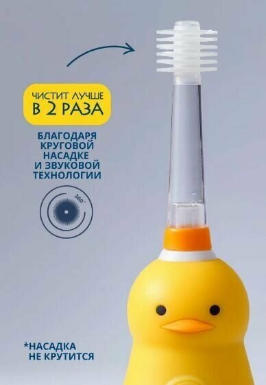 Cylindrical head 360°; 20,000 ultra-fine DuPont Tynex bristles; 2 minute timer; work from 1 AAA battery; waterproof standard IPX7; LED backlight; there is a manufacturer's warranty
