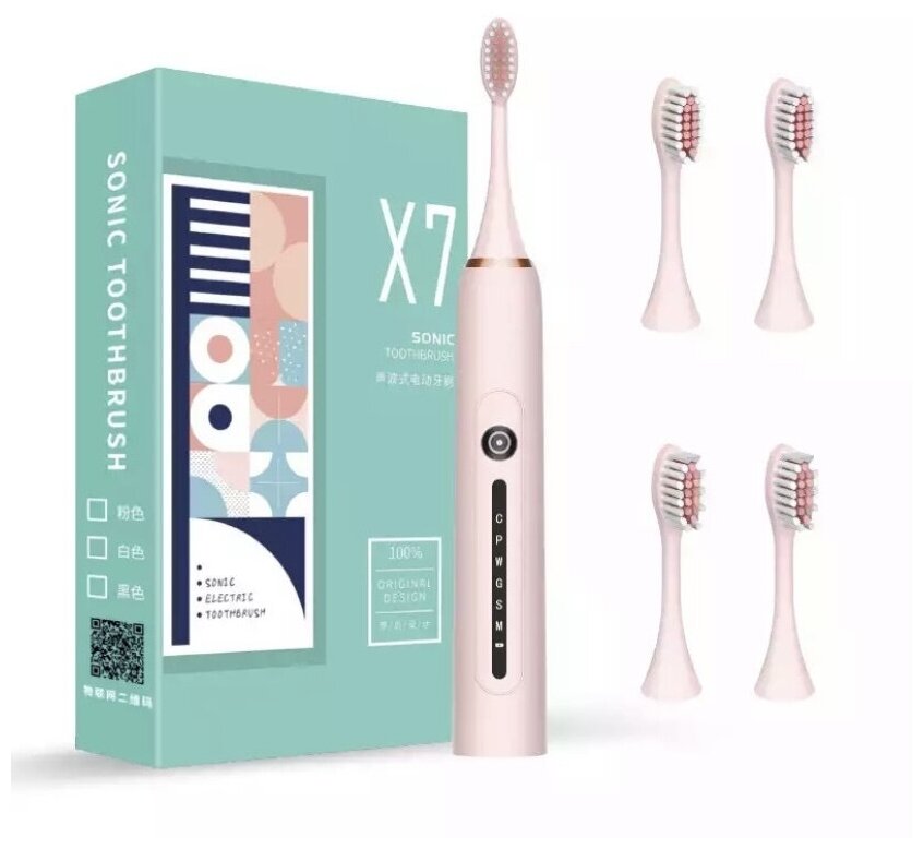 SONIC TOOTHBRUSH X-7 PINK ELECTRIC SONIC TOOTHBRUSH with 3 extra brush heads