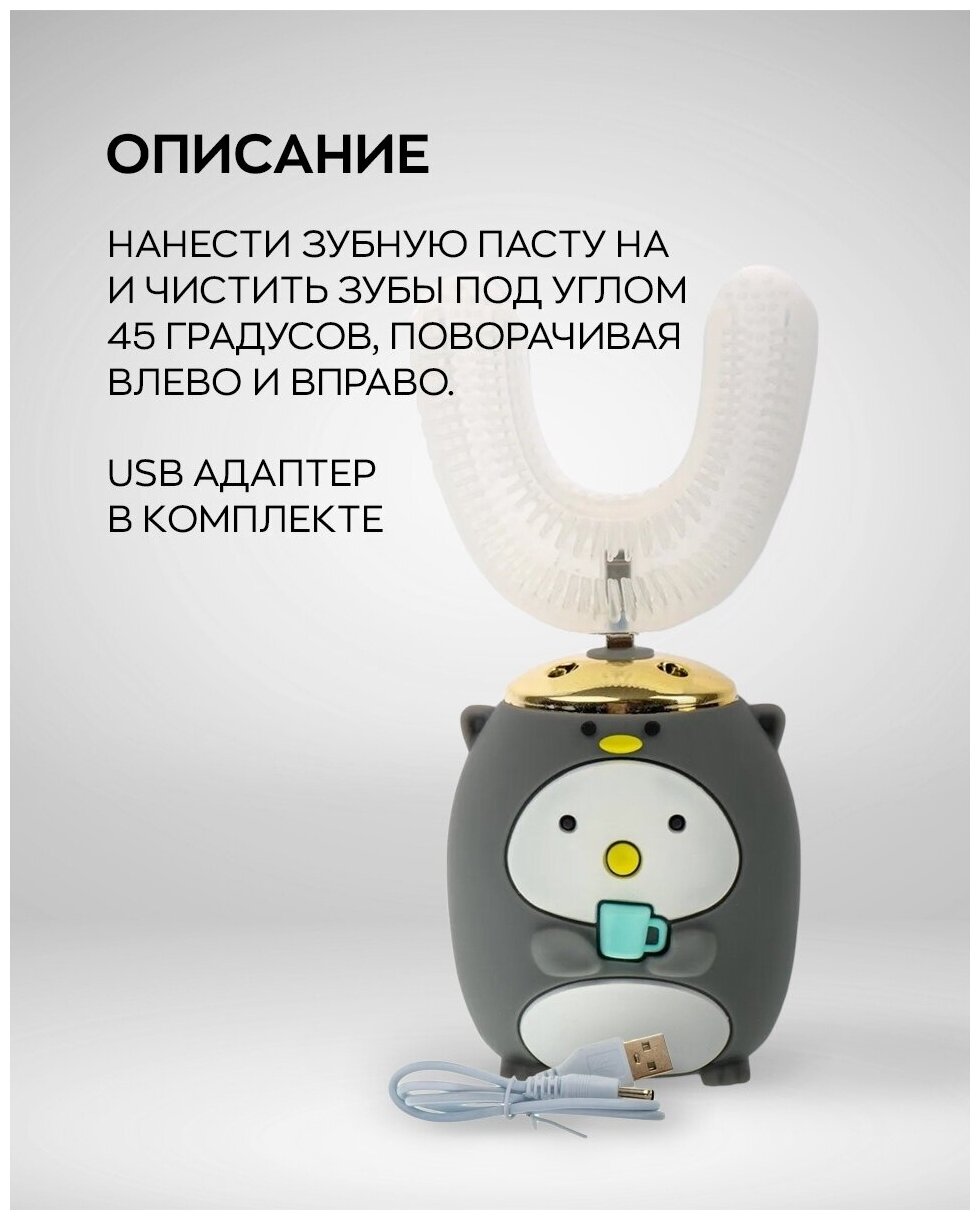 Purpose: for children, brush type: standard, power supply: battery, operating modes: delicate cleaning, number of nozzles in the set: 1, communication protocol: USB