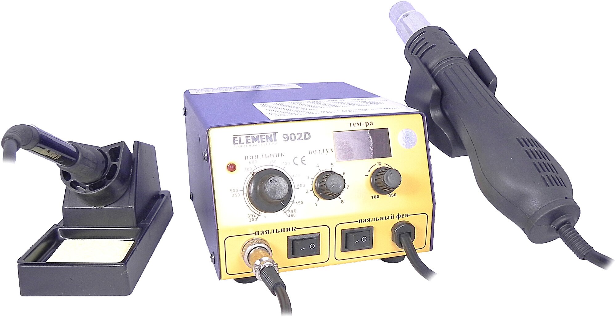 Nozzles for hair dryer 3 pcs., hot air gun holder, warranty card, hot air gun, soldering iron, documentation, sponge, soldering iron stand