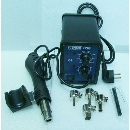 700 W, power adjustable, ceramic heater, power supply: mains, max. temperature 450°C, warm-up time: 5 s