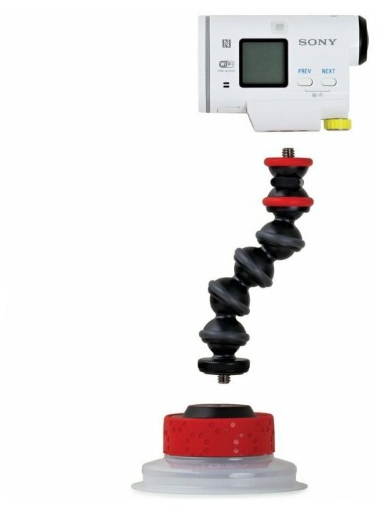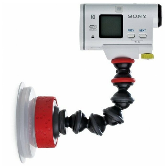 The Suction Cup GorillaPod Arm is a swivel mount with a suction cup that is great for mounting on fixed surfaces. This holder model is movable itself, which allows you to quickly and accurately change