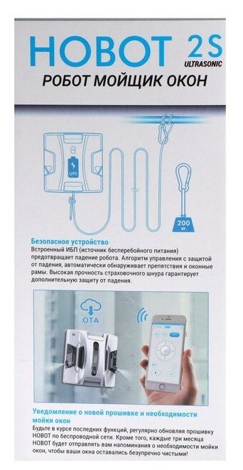Peculiarities: Automatic stop, automatic detection of the cleaning area, sound indication, frameless surface washing, obstacle avoidance, LED indication