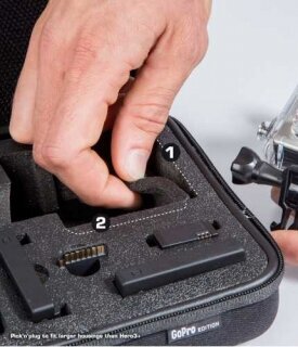 Capacity: GoPro camera in a protective box - 2 pcs., replaceable battery - 2 pcs., LCD monitor - 2 pcs., additional BacPac battery - 2 pcs., SD memory card - 1 pcs., WiFi remote control - 1 pcs., set suction cup mounts - 1 pc., tripod mount - 1 pc.,
