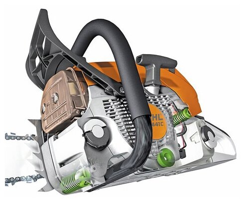 Peculiarities: Two-stroke engine with STIHL 2-MIX technology; chain catcher; Ematic lubrication system; compensation carburetor IntelliCarb; ElastoStart starter