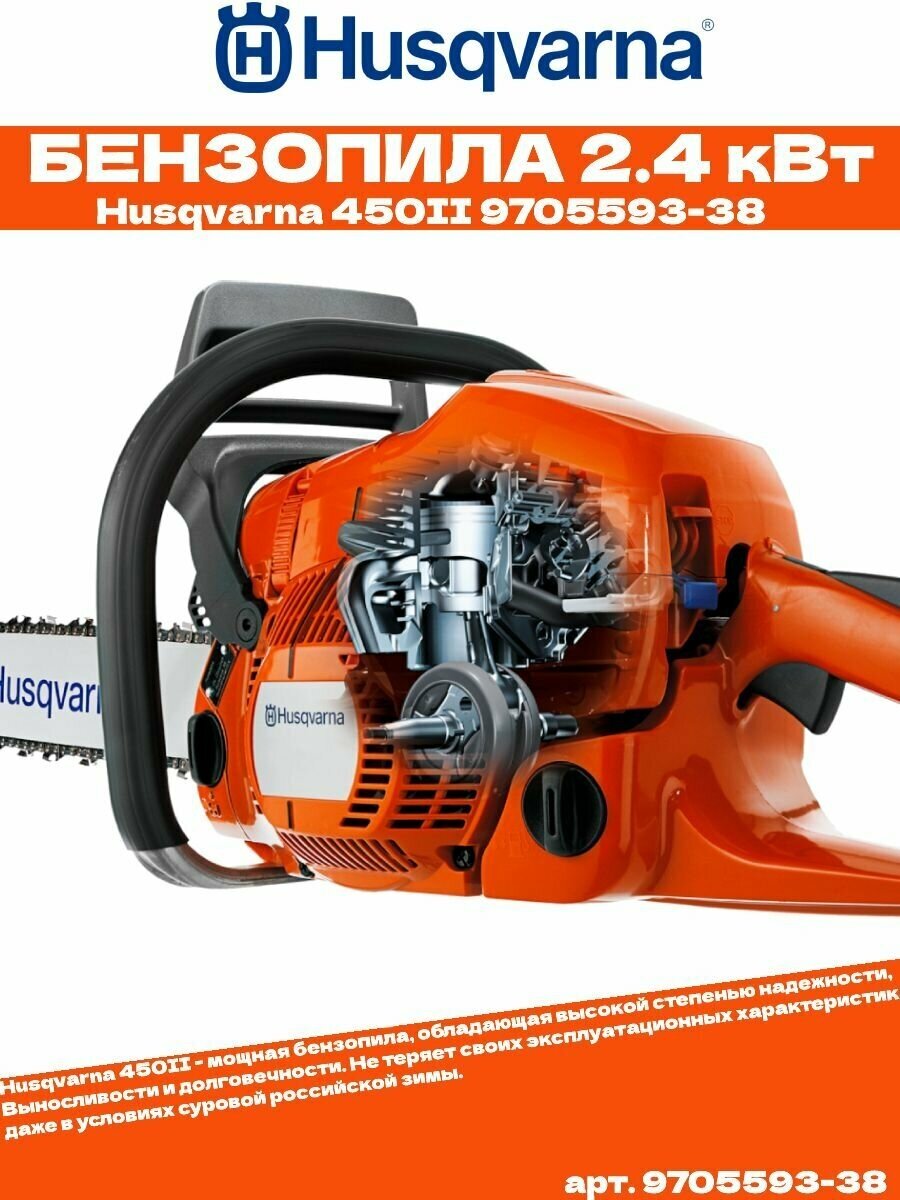 Chainsaw Husqvarna 450 e, saw bar Husqvarna Pixel 15' 0.325' 1.3 64, chain Husqvarna H30 Pixel 15' 0.325' 1.3 64 links, transport cover, assembly key, instruction manual