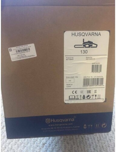 Contents of delivery: Husqvarna 130 chainsaw, 3/8” mini chain, 14” 36 cm bar, transport cover, assembly key