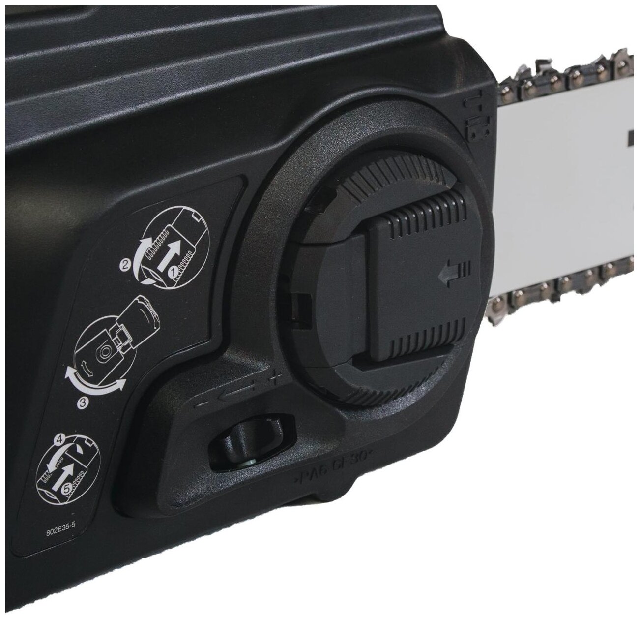 Soft start, engine braking, chain brake, toolless chain tension adjustment