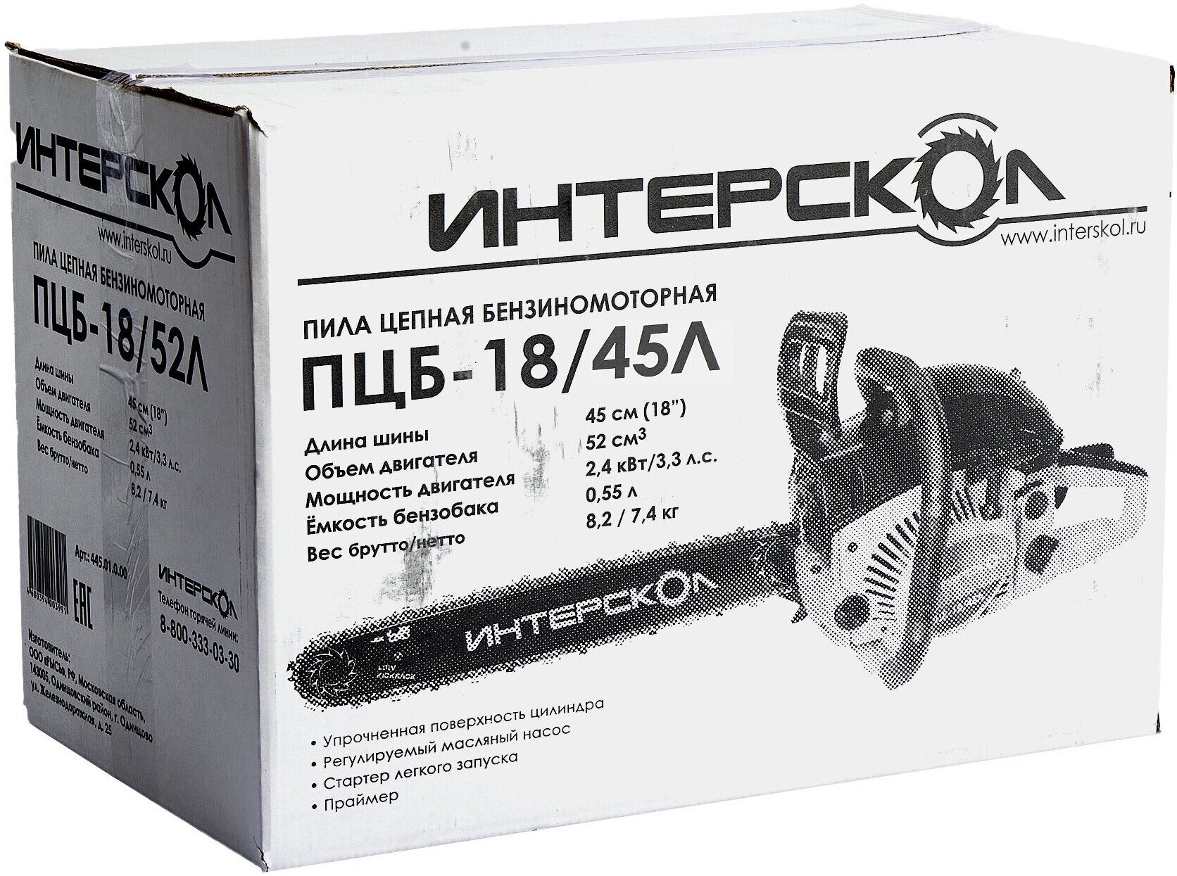 Description: Engine type: gasoline, W: 1800 W, hp power: 2.40 hp, tire length: 45 cm, chain pitch: 3/8 inch, engine displacement: 45 cm³, anti-vibration, weight: 6.90 kg