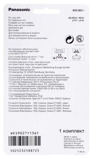 Type: foil and cutter block, compatible device manufacturer: Panasonic, intended for: electric shaver