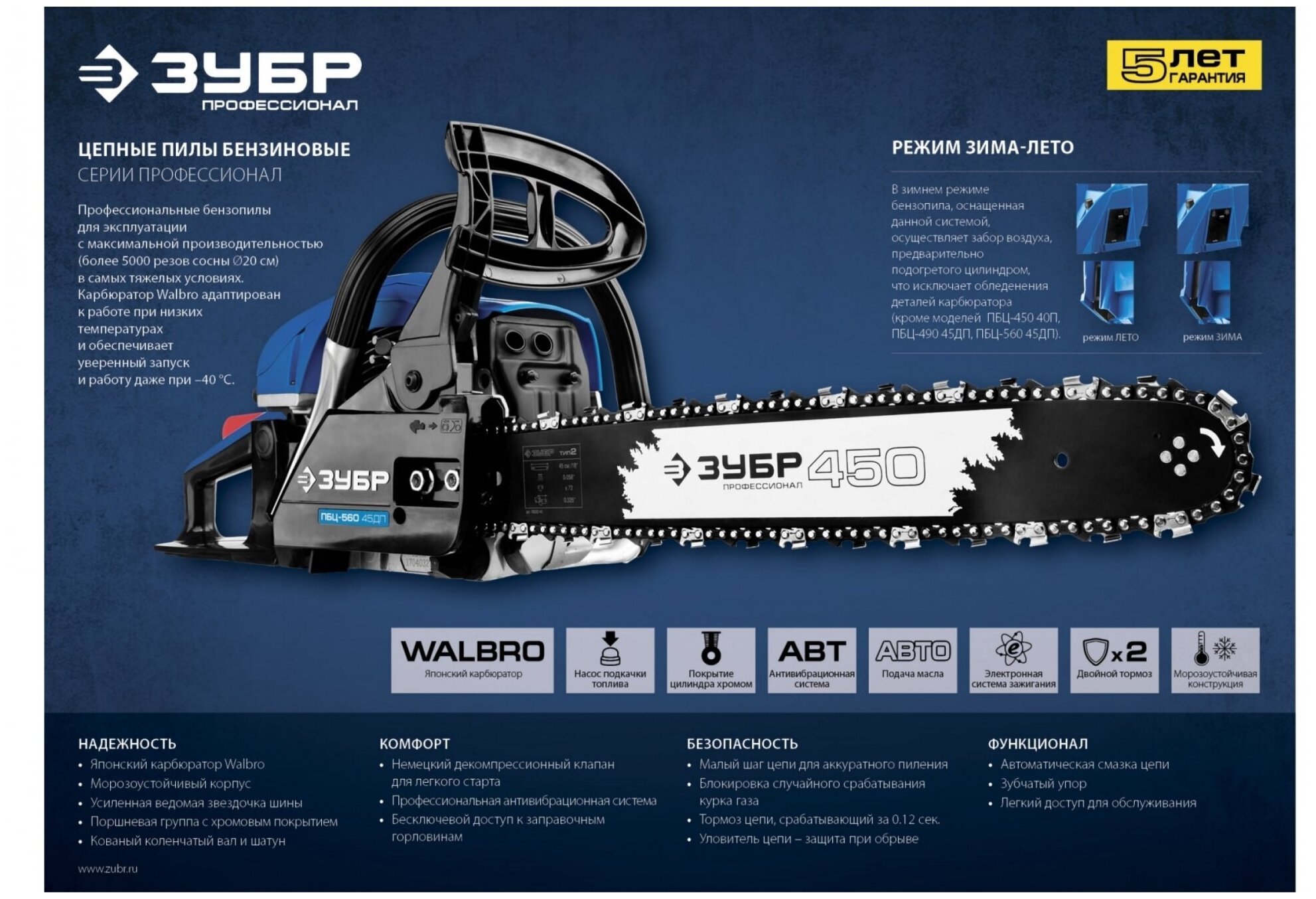 Gasoline saw ZUBR PBTs-380 35p 1400 W/1.9 hp