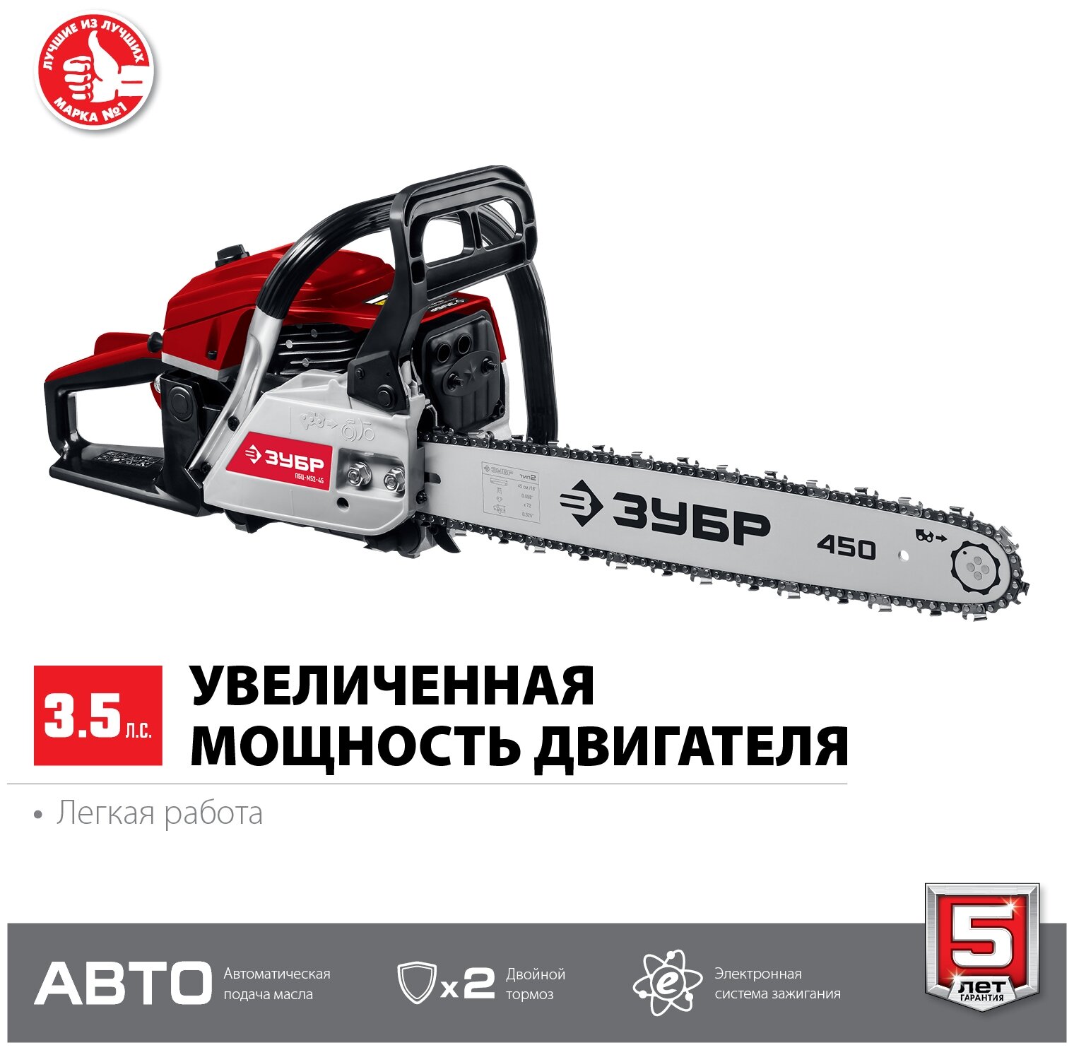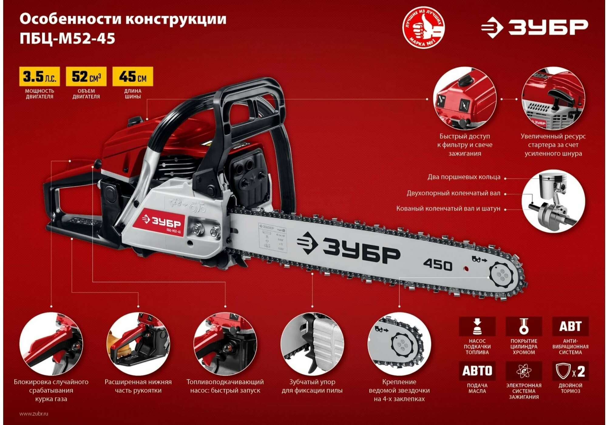Engine type: gasoline, W: 2600 W, hp: 3.50 hp, tire length: 45.72 cm, chain pitch: 0.325 inch, engine displacement: 52 cm³, anti-vibration, weight: 5.80 kg