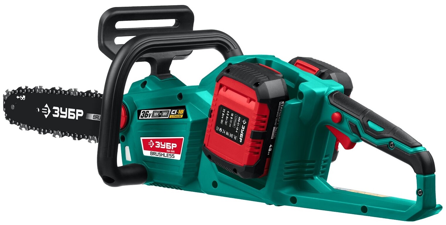 Motor voltage 36 V, powered by two 18 V batteries, number of links: 52, battery charge time: 1.5 h; oil tank volume: 160 ml