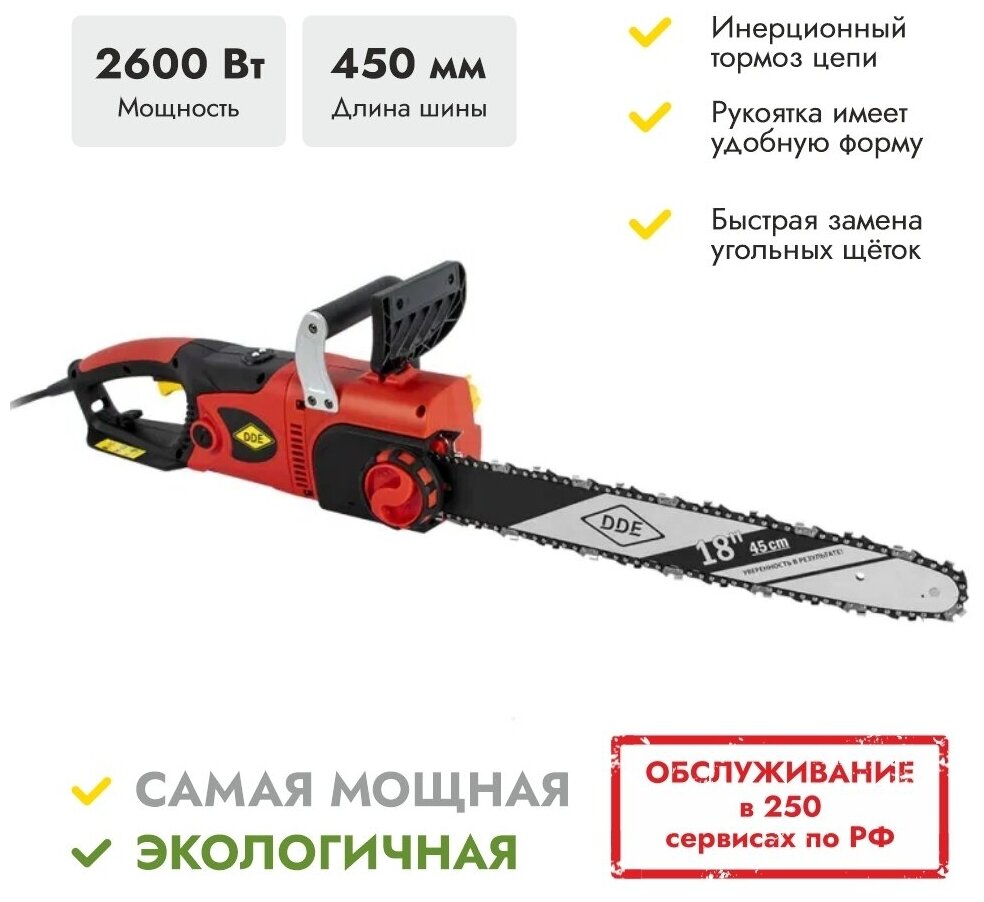 Motor type: electric, Wattage: 2600 W, bar length: 45 cm, chain pitch: 3/8 inch, weight: 5.95 kg
