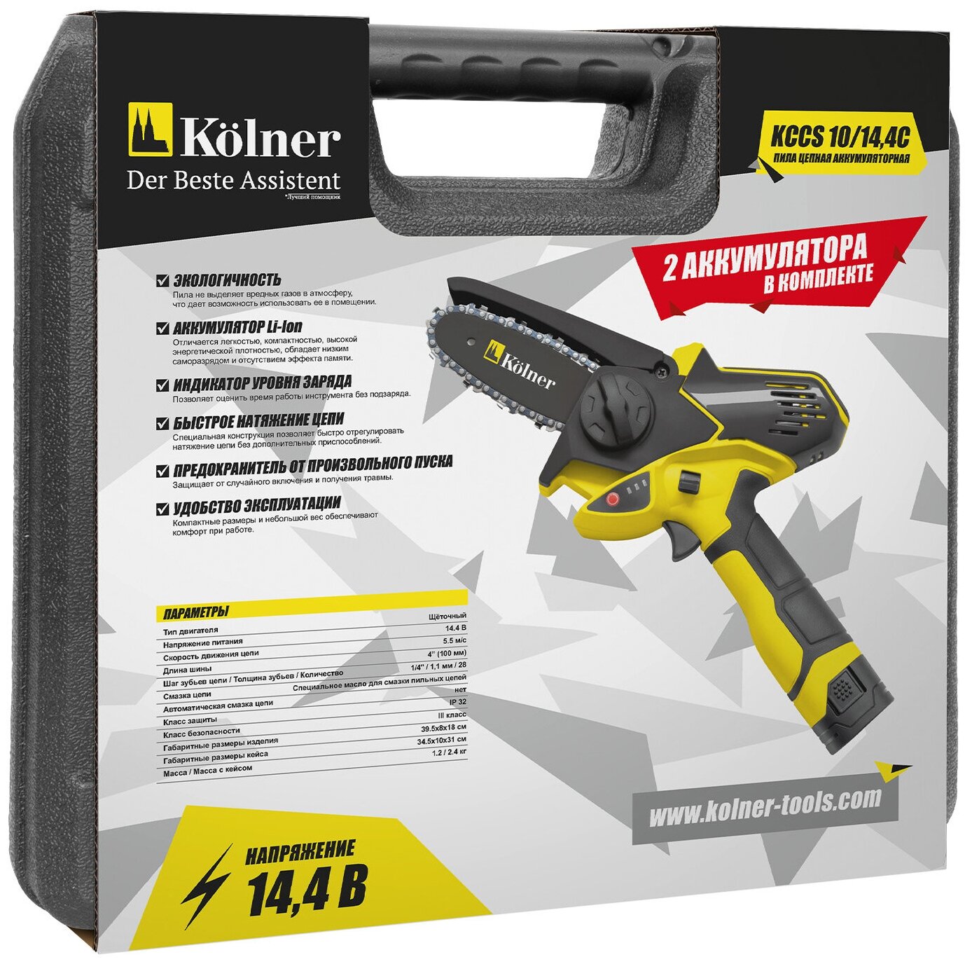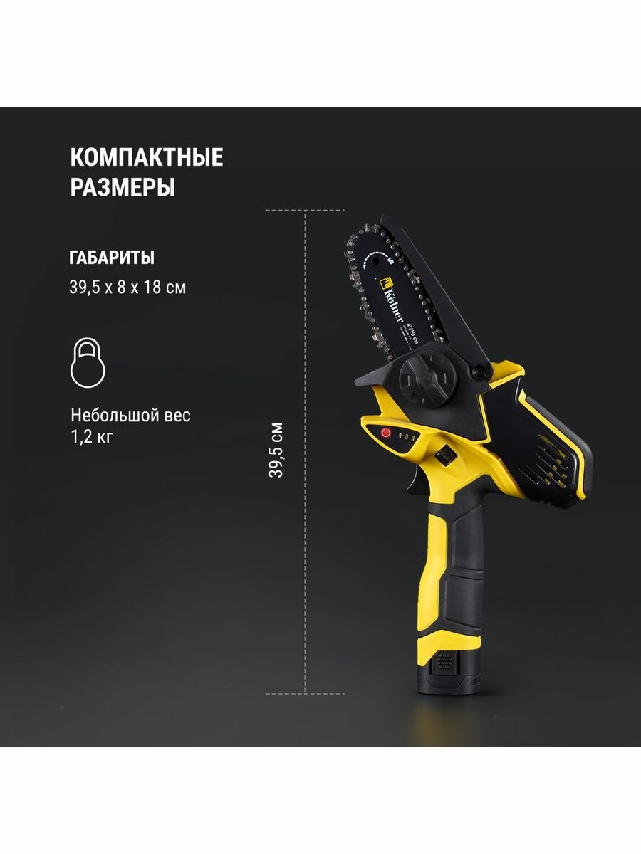 Motor type: electric, battery operation, bar length: 10 cm, chain pitch: 1/4", weight: 1.20 kg