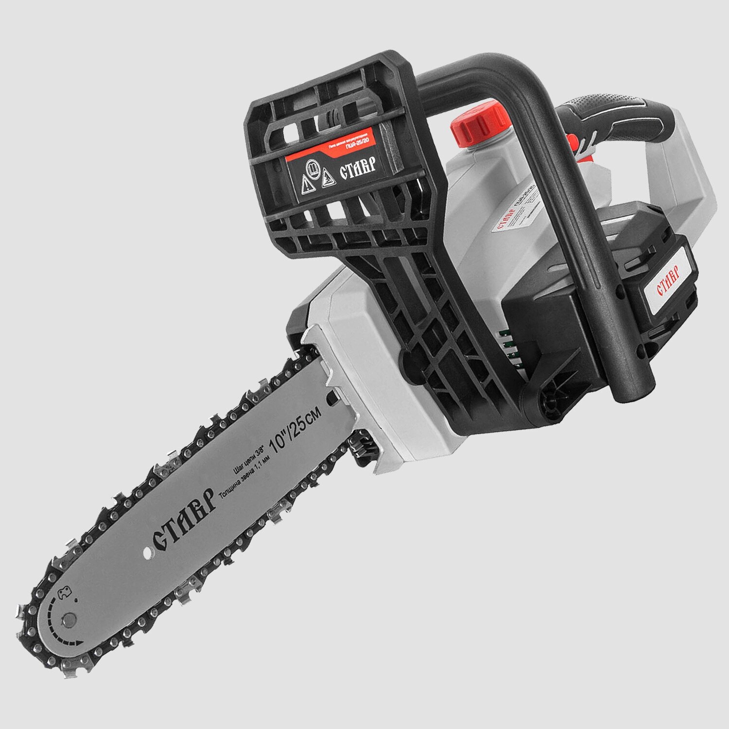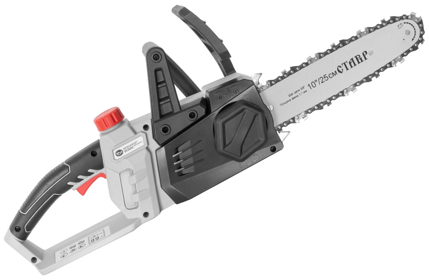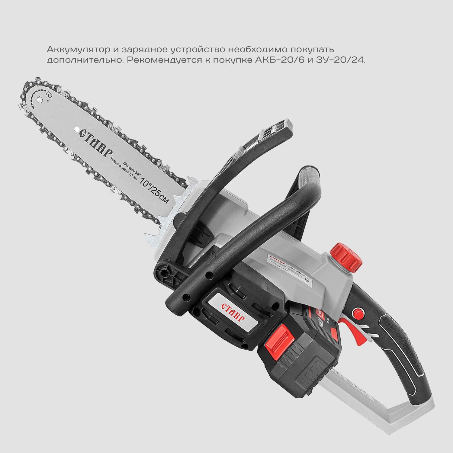 Engine type: electric, battery operation, bar length: 25.40 cm, chain pitch: 3/8", weight: 3.40 kg