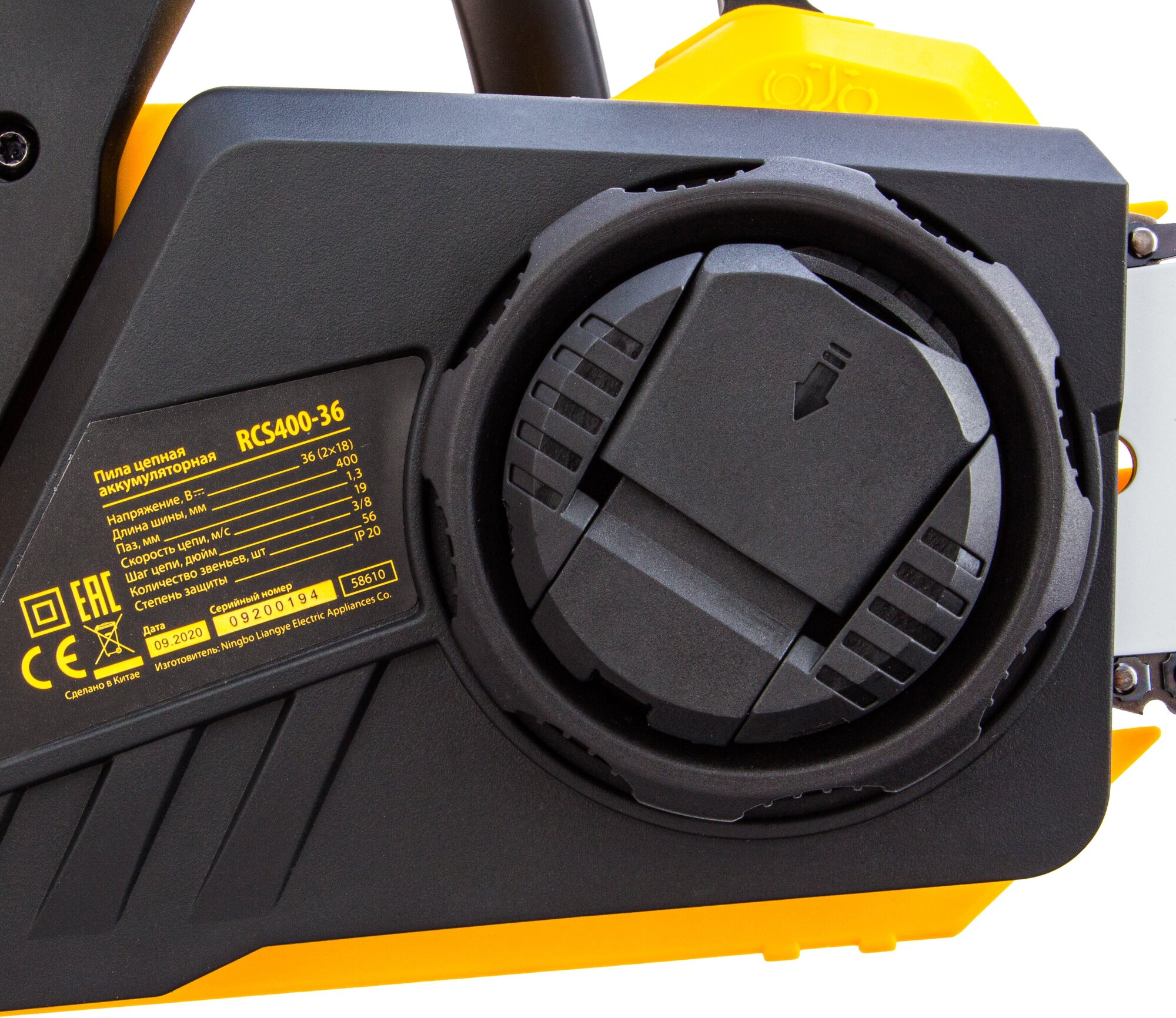Brushless motor; simultaneous operation from two 18 V batteries; chain drive link thickness: 1.3 mm, number of links: 56 pcs.