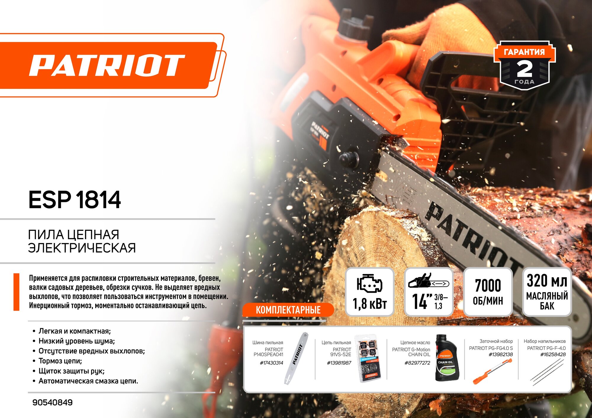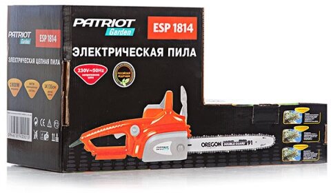 Contents of delivery: Electric chain saw Patriot ESP 1814, chain, protective cover, tire, set of keys