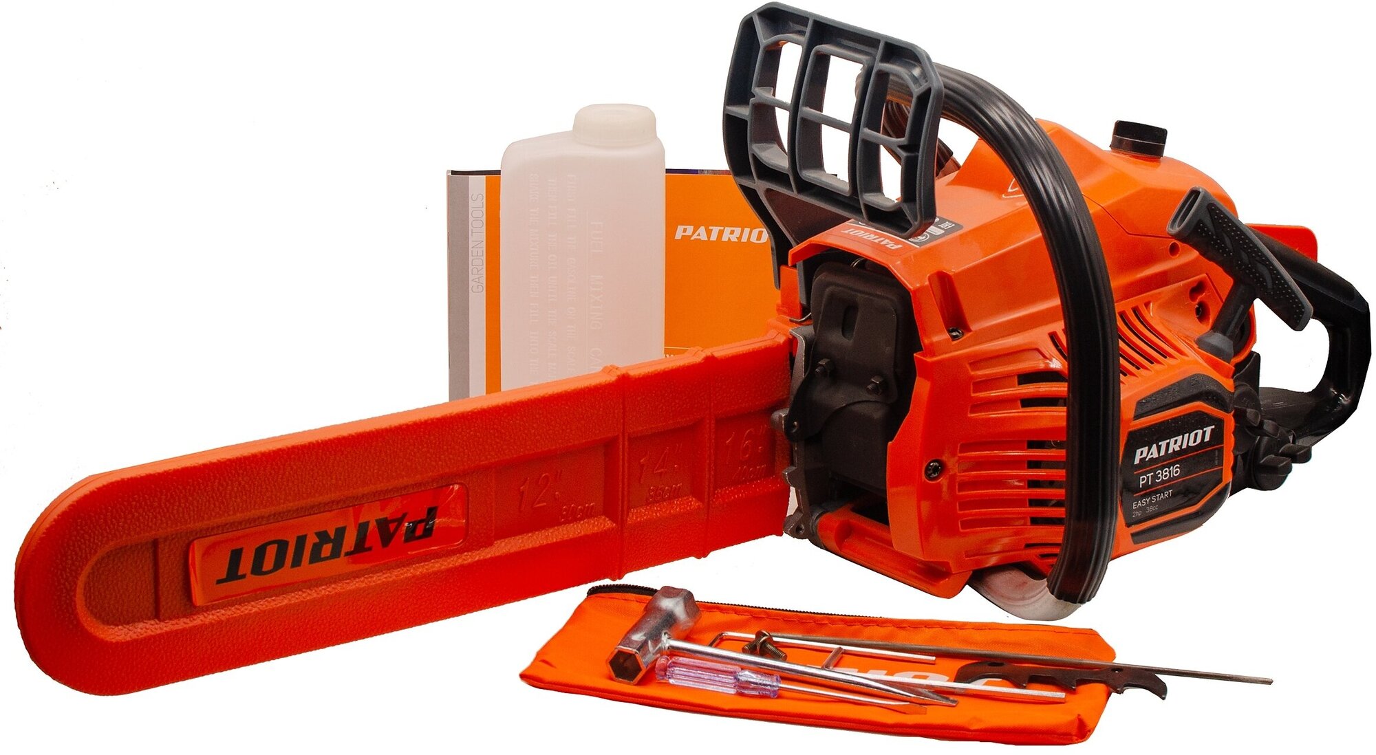 Contents of delivery: Chainsaw, tire, chain, chains, a container for preparing the mixture, an emphasis with a set of fasteners, a casing, instructions