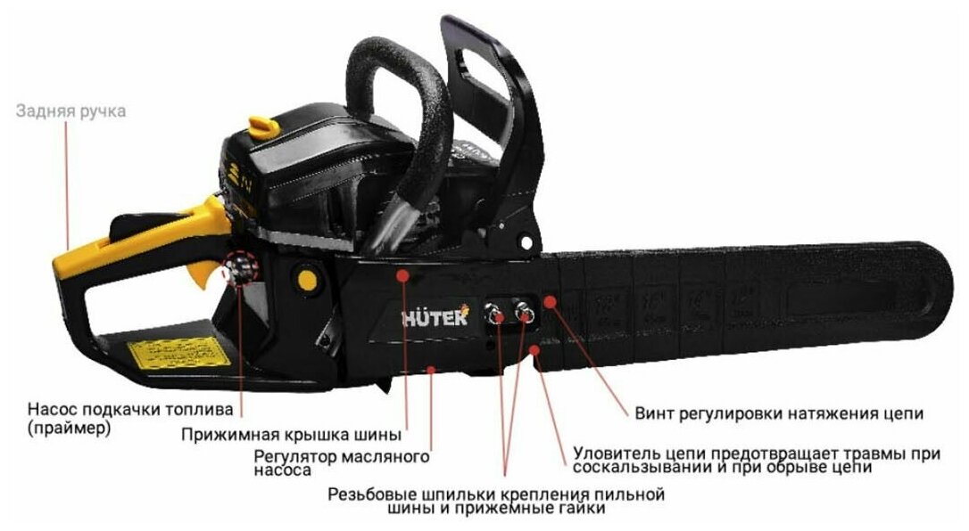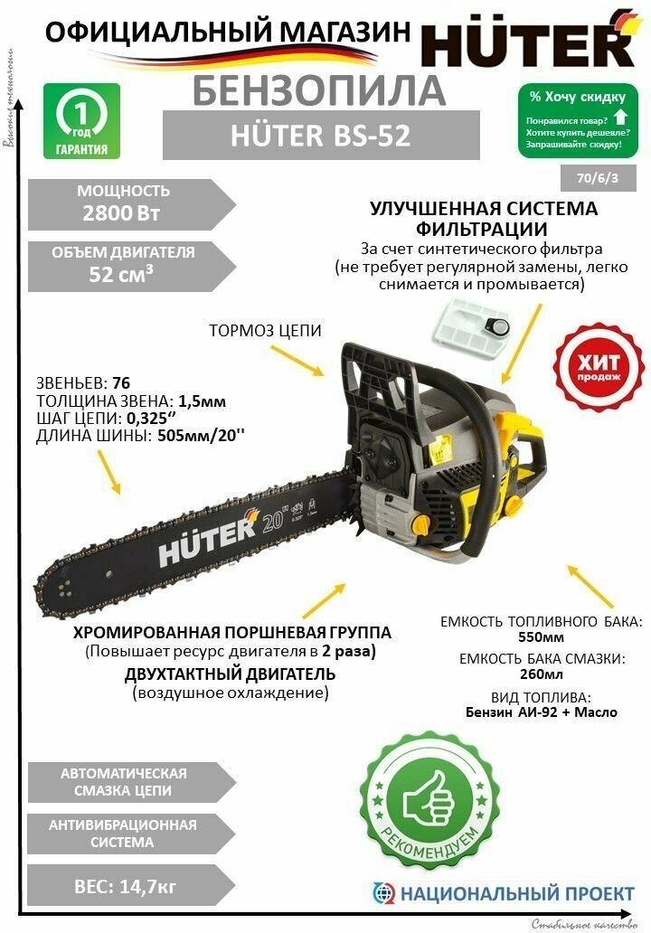 Peculiarities: Two-stroke engine; automatic oil supply; chain brake; number of links 76 pcs