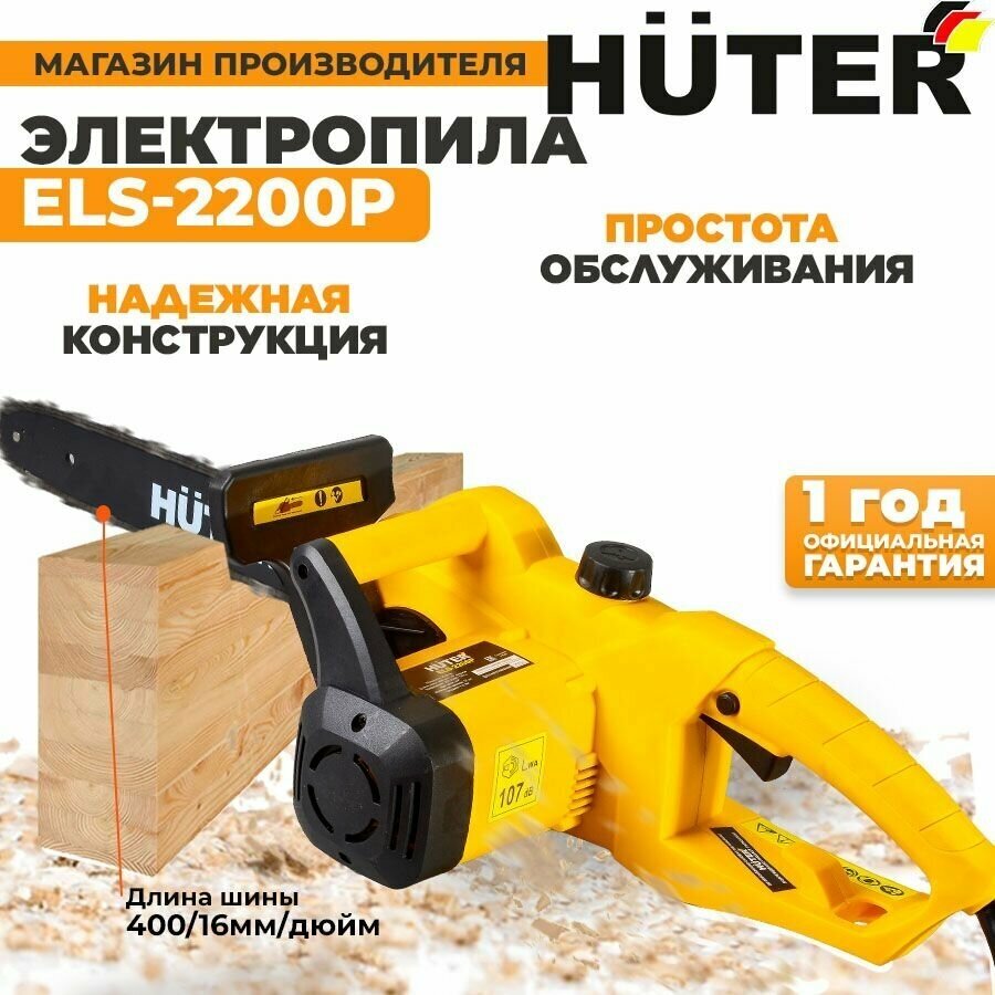 Motor type: electric, Power W: 2200 W, HP power: 2.90 HP, bar length: 40 cm, chain pitch: 3/8 inch, cutting length: 400 mm, soft start, weight: 5.20 kg