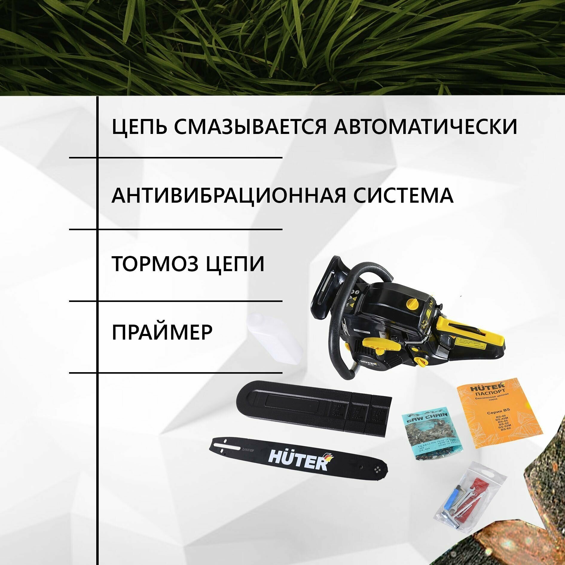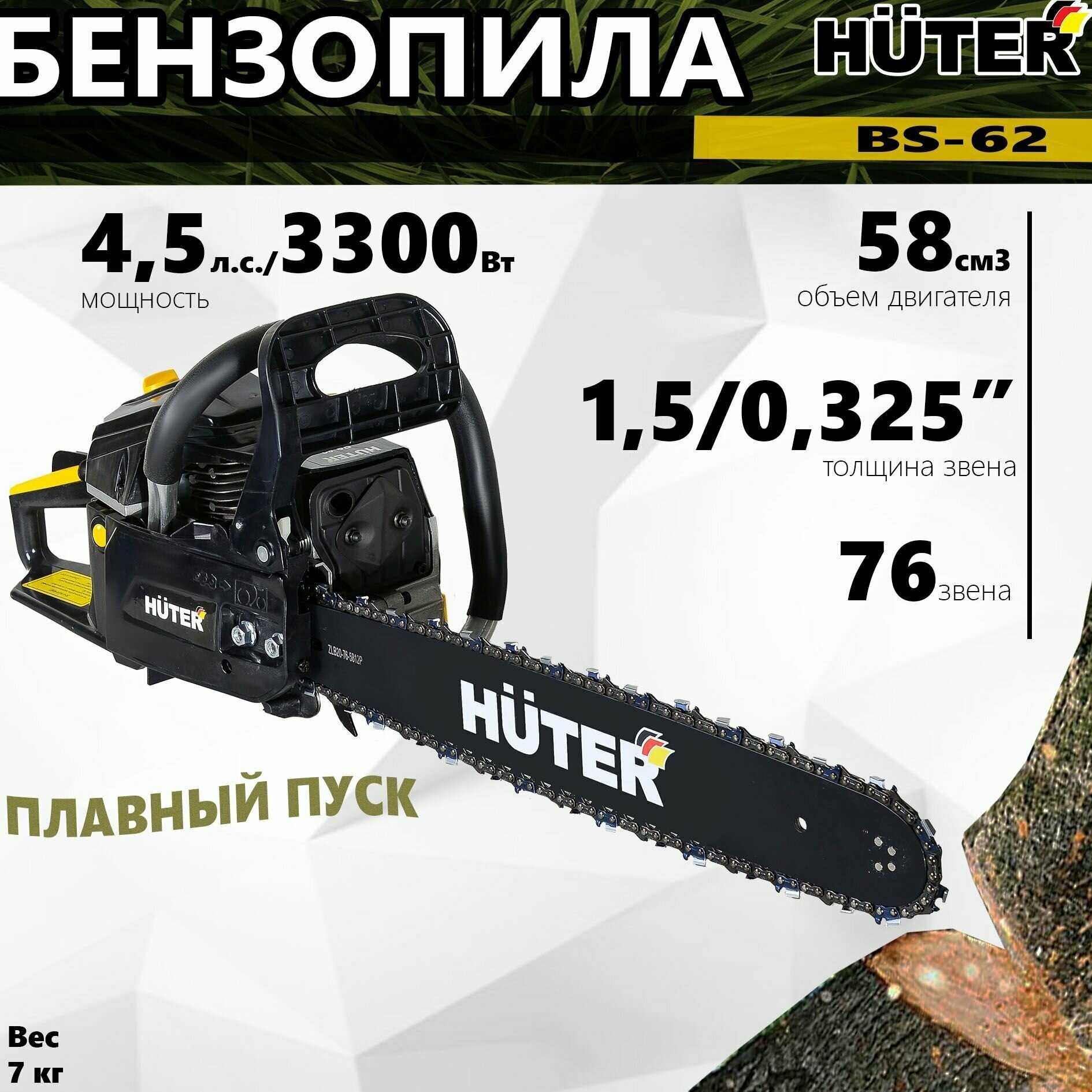 Engine type: gasoline, W: 3300 W, hp: 4.49 hp, bar length: 50.50 cm, chain pitch: 0.325 inch, engine displacement: 58 cm³, cutting length: 500 mm, anti-vibration, smooth start, weight: 7.50 kg