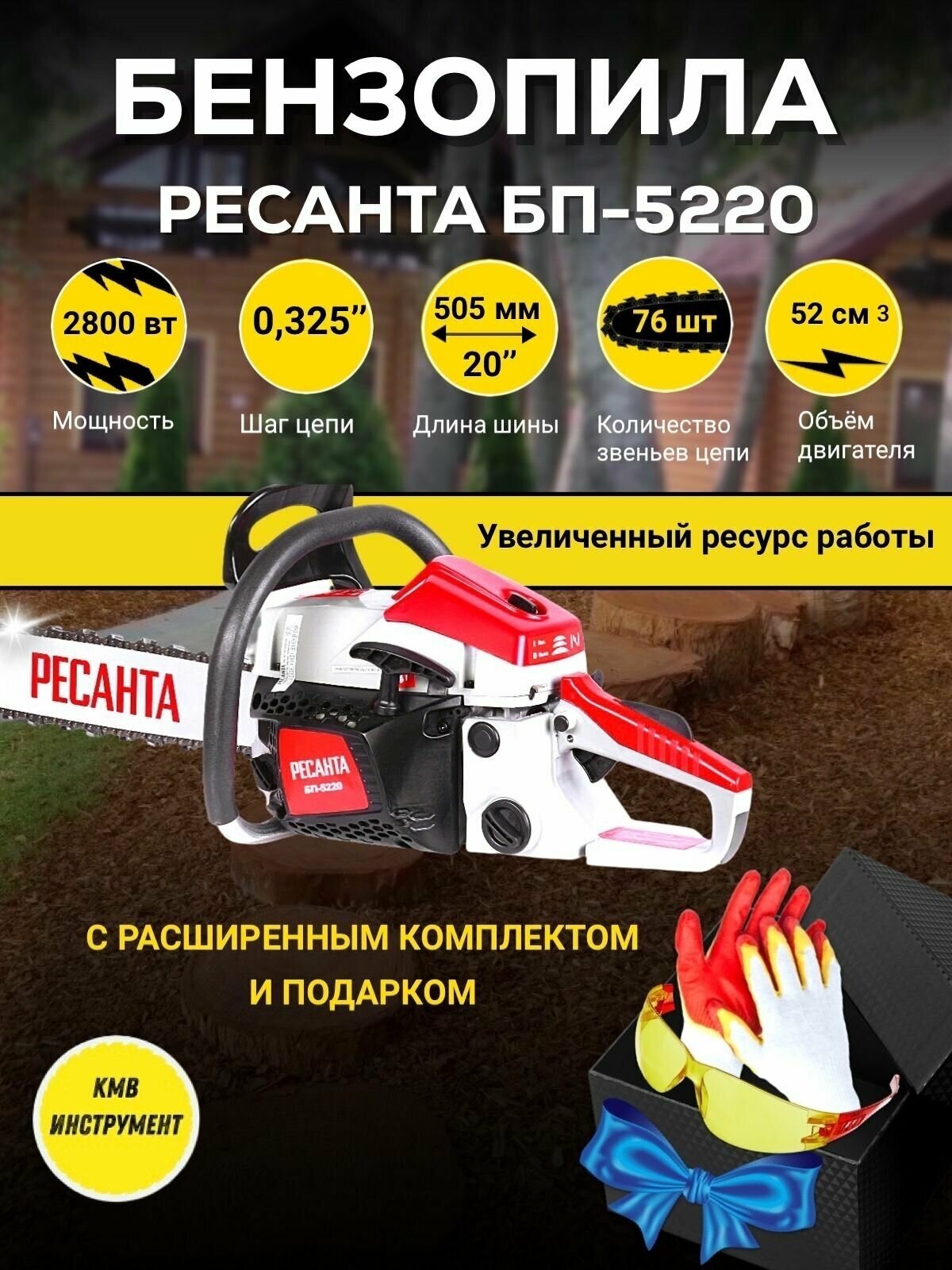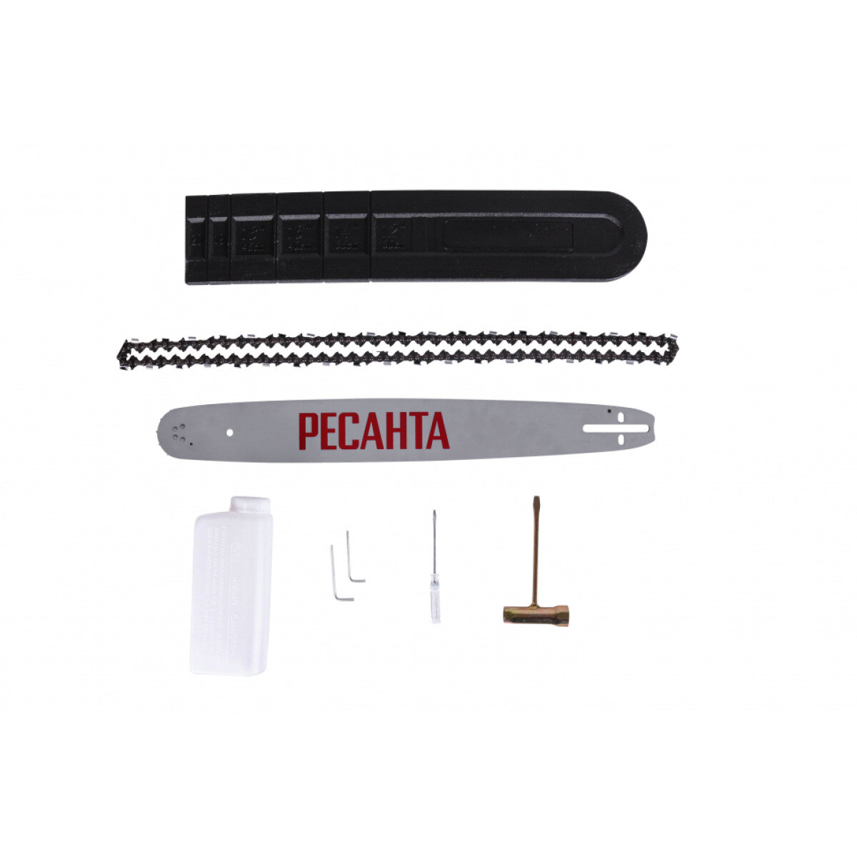 Link thickness: 1.5mm, number of chain links: 76 pcs., fuel: AI-92 gasoline + oil for 2T engines, engine type: 2-stroke, air-cooled