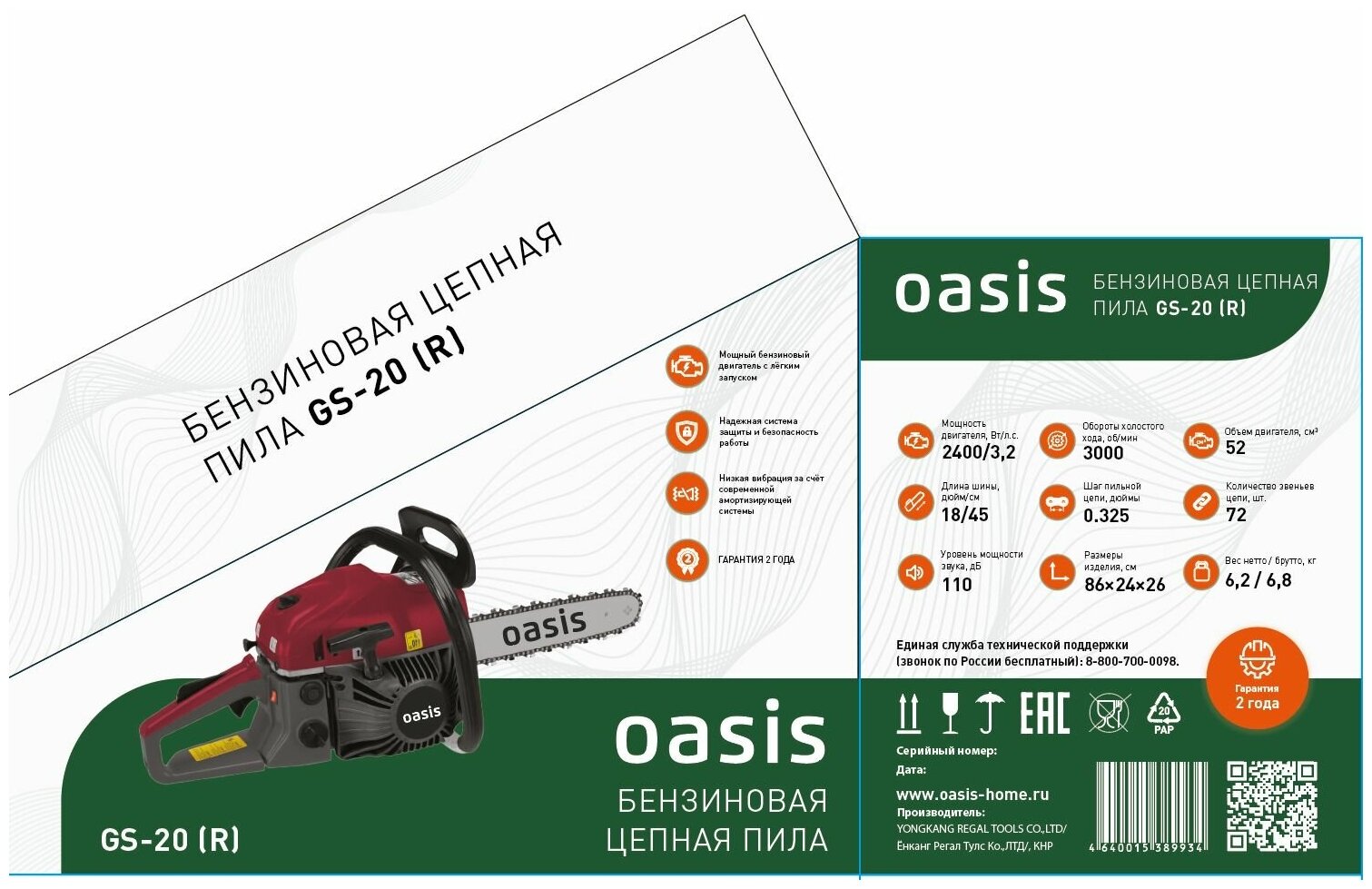 Oasis GS-20 2000W/2.7HP Gasoline Saw