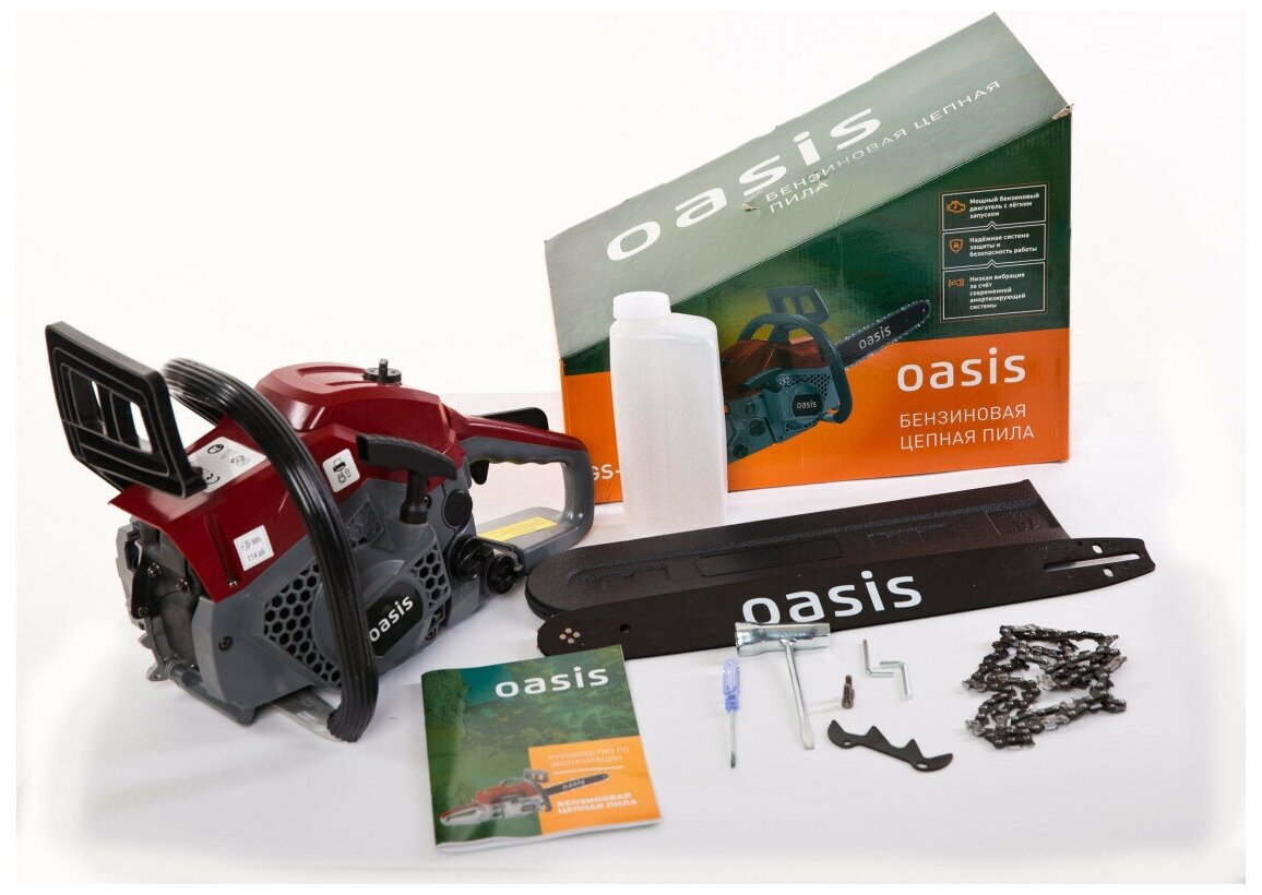 Engine type: gasoline, W: 2800 W, hp power: 3.80 hp, bar length: 45 cm, chain pitch: 0.325 inch, engine displacement: 56 cm³, cutting length: 400 mm, anti-vibration, weight : 6.85 kg