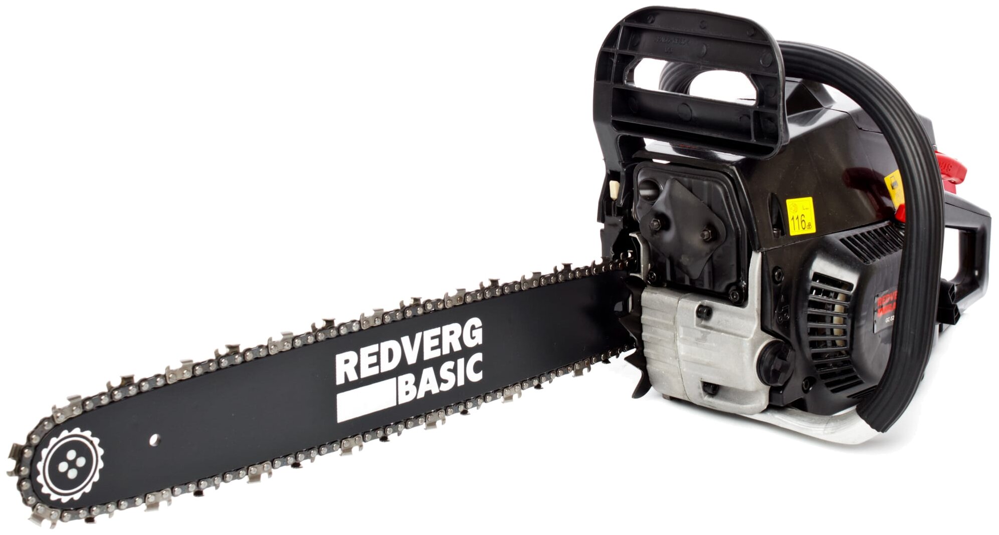 Saw, guide bar, bar cover, saw chain, fuel tank, set of tools and wrenches, instructions