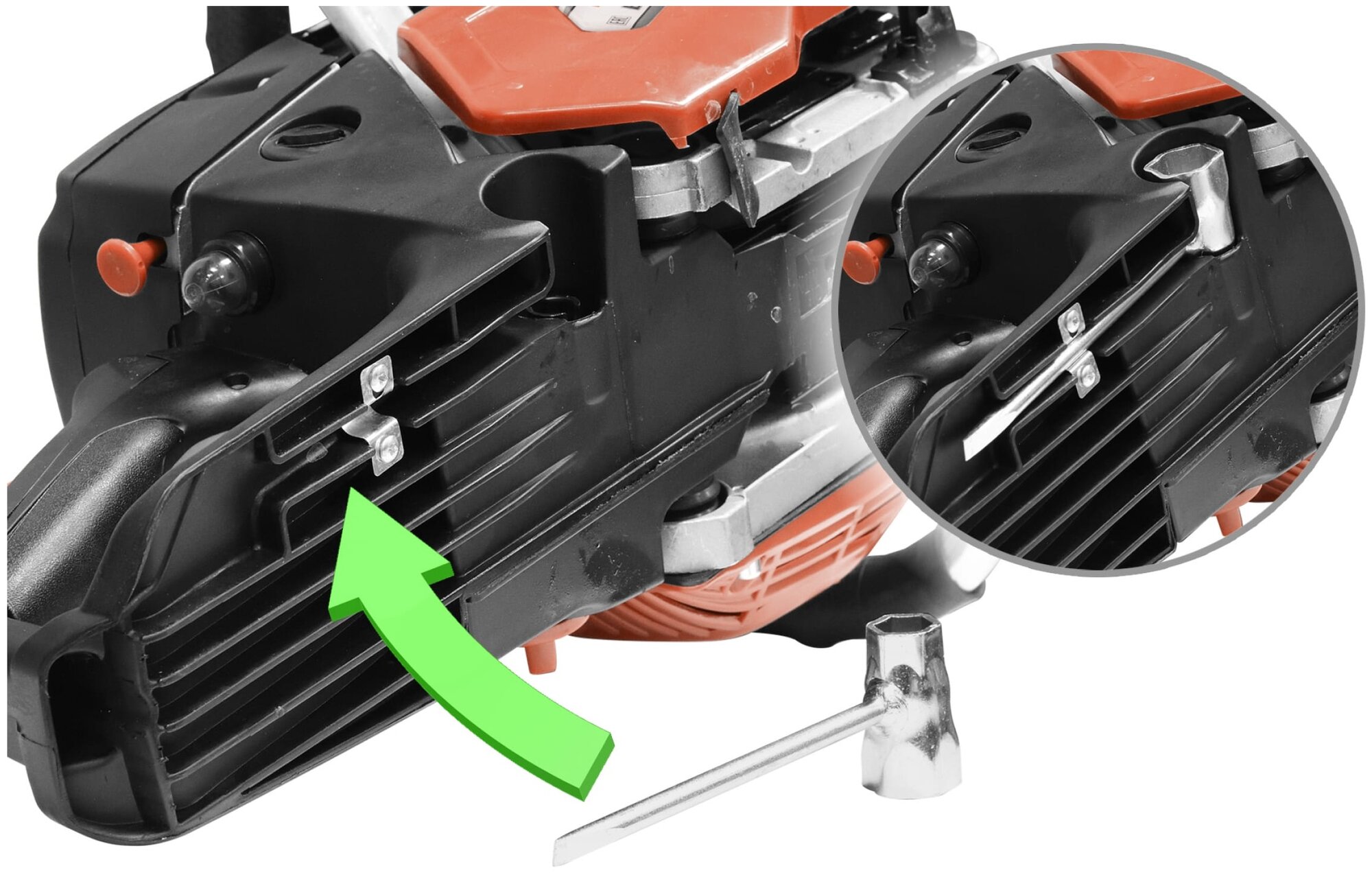 Soft start, anti-vibration, chain brake