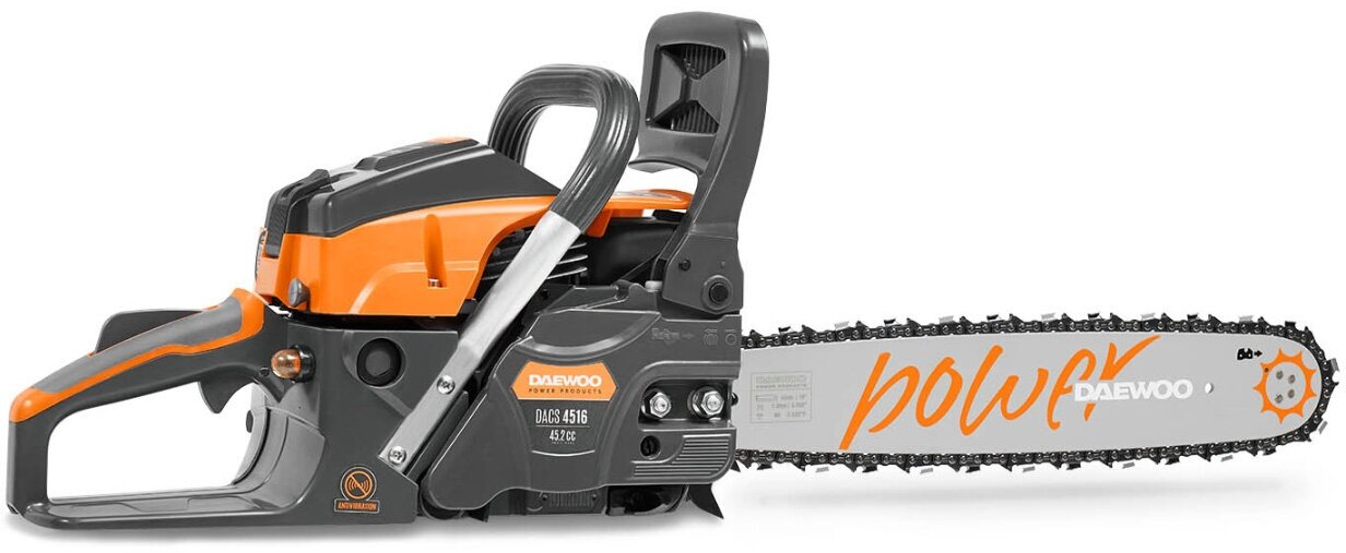 2-stroke petrol engine 045 two stroke; chain link thickness 1.5 mm, number of links 66 pcs., number of cutting links 33 pcs.; weight of the equipped saw without fuel 6.4 kg