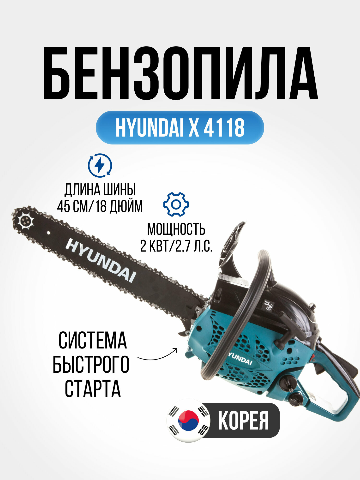 Engine type: gasoline, W: 2000 W, hp power: 2.70 hp, tire length: 45 cm, chain pitch: 3/8 inch, engine displacement: 41 cm³, weight: 4.50 kg