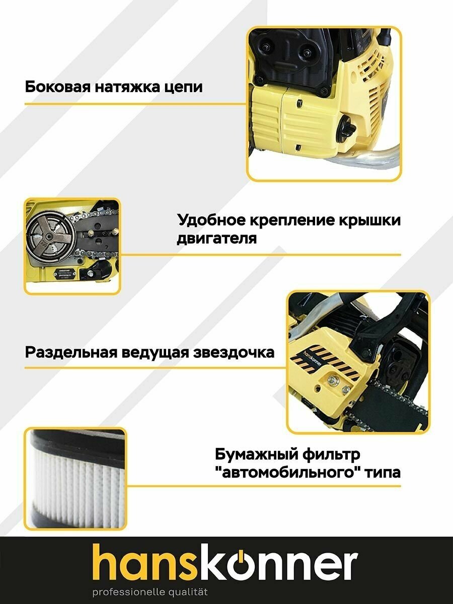 Engine type: gasoline, Power W: 2200 W, HP power: 3 HP, tire length: 45 cm, chain pitch: 0.325 inch, engine size: 54 cm³, anti-vibration, soft start, weight: 6.50 kg